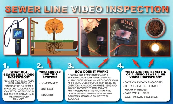 - When a line gets backed up, weird smells and odors will no doubt start to come back up and try as you might to get rid of the stench it will always come back until it is properly addressed. By doing a camera inspection, which consists of a small waterproof camera on the end of a flexible cable, a plumber can find the source of the problem in no time. The camera sends live footage of your underground pipes back to our computer so we can assess the situation and solve the problem